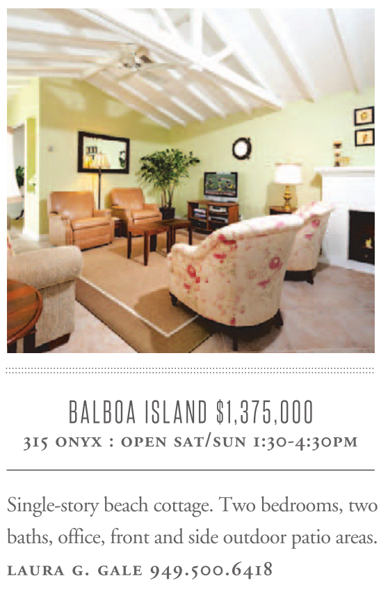 Single-story beach cottage. Two bedrooms, two baths, office, front and side outdoor patio areas. laura g. gale 949.500.6418