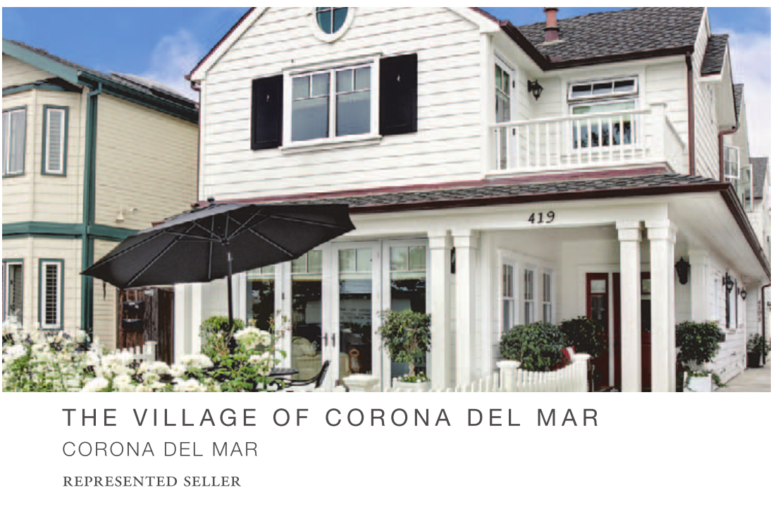 T H E V I L L AG E O F C O R O N A D E L M A R CORONA DEL MAR represented seller