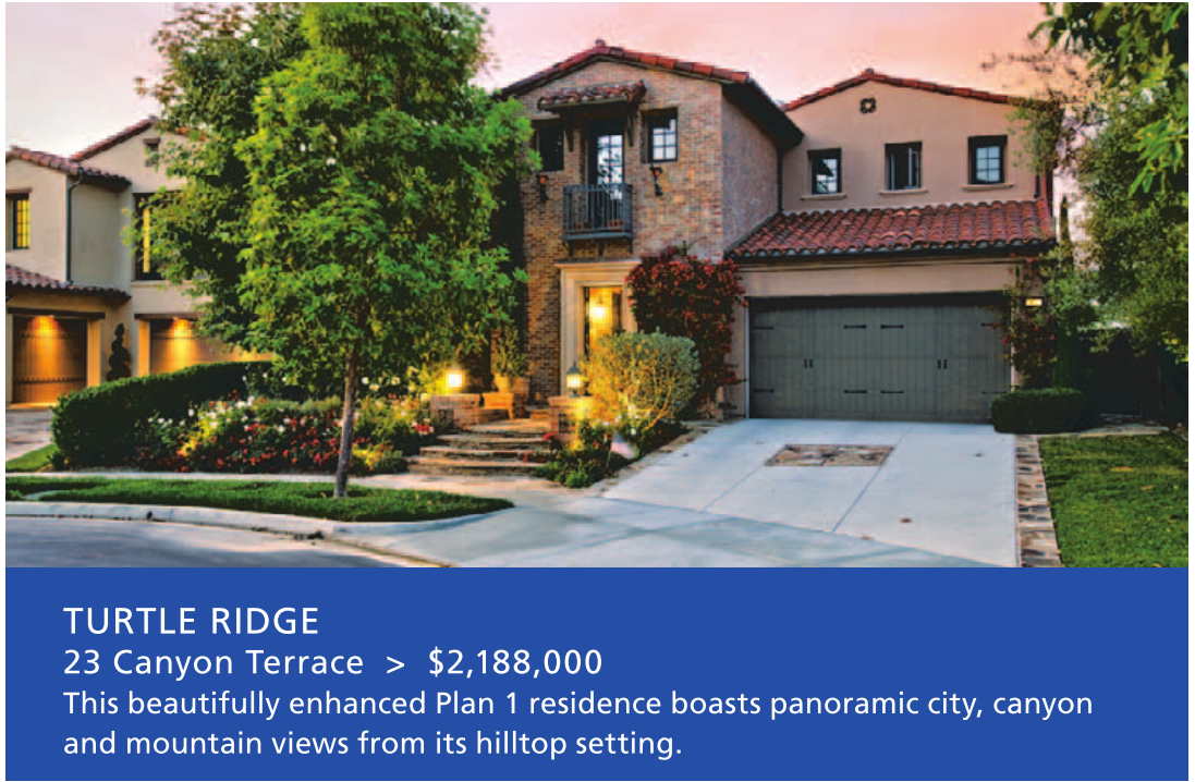 TURTLE RIDGE 23 Canyon Terrace > $2,188,000 This beautifully enhanced Plan 1 residence boasts panoramic city, canyon and mountain views from its hilltop setting.