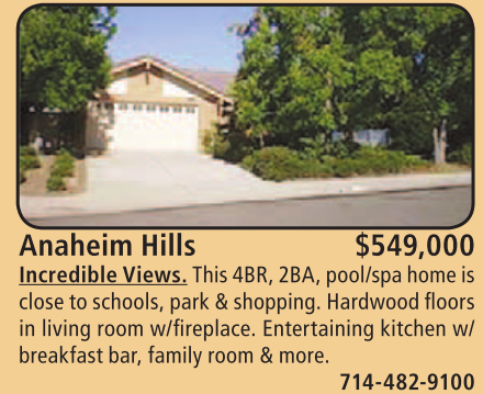 Anaheim Hills $549,000 Incredible Views. This 4BR, 2BA, pool/spa home is