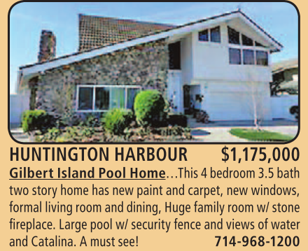 HUNTINGTON HARBOUR $1,175,000 Gilbert Island Pool Home…This 4 bedroom 3.5 bath