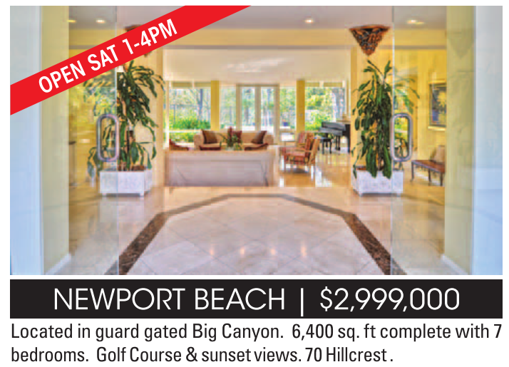 Located in guard gated Big Canyon. 6,400 sq. ft complete with 7 bedrooms. Golf Course & sunset views. 70 Hillcrest .