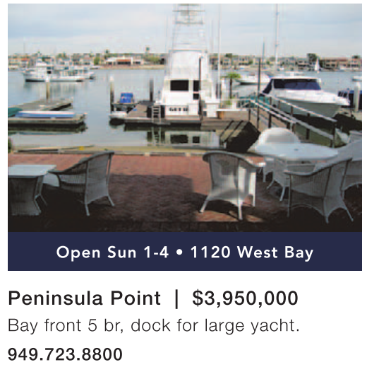 Peninsula Point | $3,950,000 Bay front 5 br, dock for large yacht. 949.723.8800