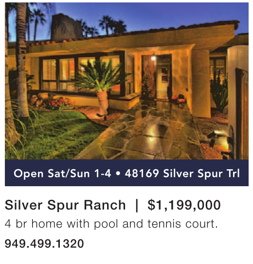 Open Sat/Sun 1-4 • 48169 Silver Spur Trl