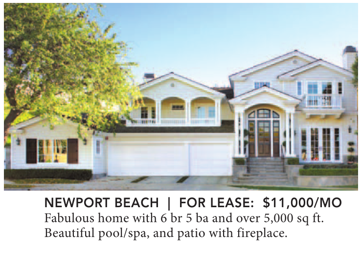 NEWPORT BEACH | FOR LEASE: $11,000/MO Fabulous home with 6 br 5 ba and over 5,000 sq ft. Beautiful pool/spa, and patio with fireplace.