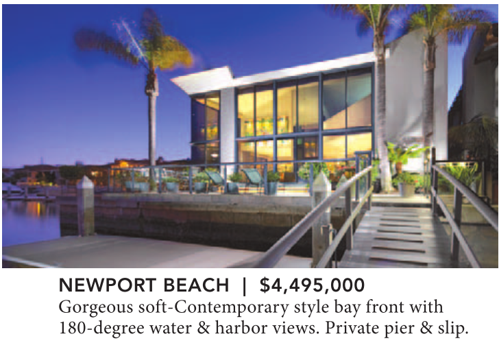 NEWPORT BEACH | $4,495,000 Gorgeous soft-Contemporary style bay front with 180-degree water & harbor views. Private pier & slip.