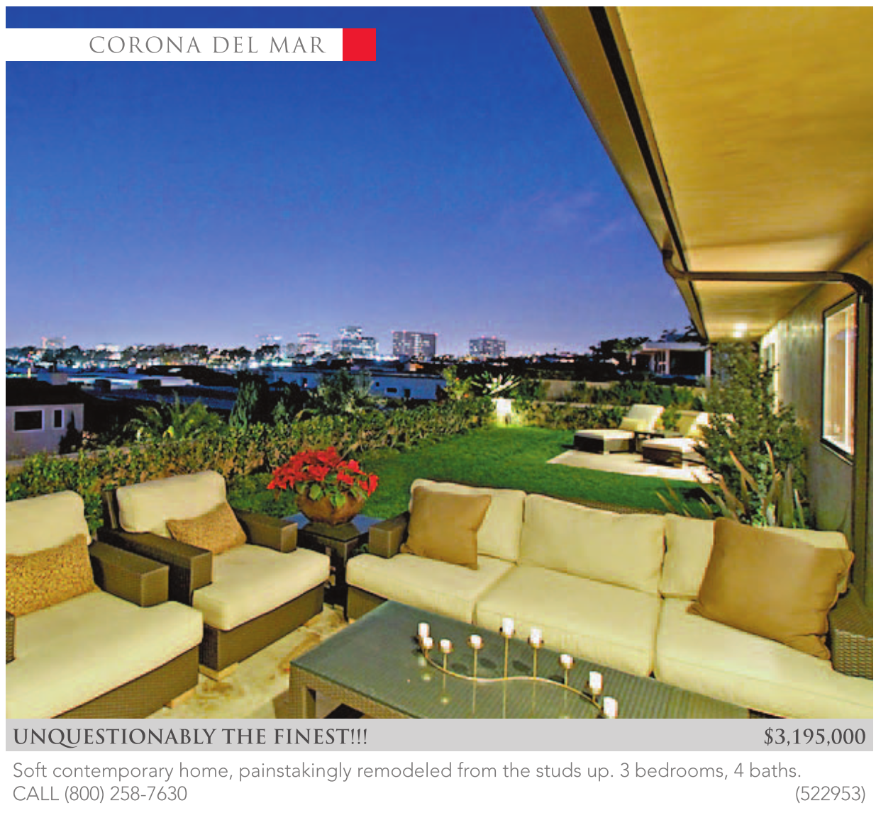 UNQUESTIONABLY THE FINEST!!! $3,195,000 Soft contemporary home, painstakingly remodeled from the studs up. 3 bedrooms, 4 baths. CALL (800) 258-7630 (522953)