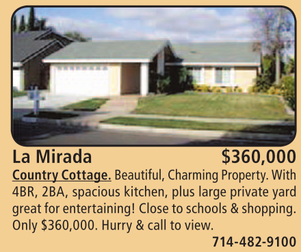La Mirada $360,000 Country Cottage. Beautiful, Charming Property. With