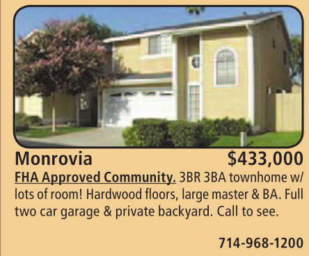 Monrovia $433,000 FHA Approved Community. 3BR 3BA townhome w/