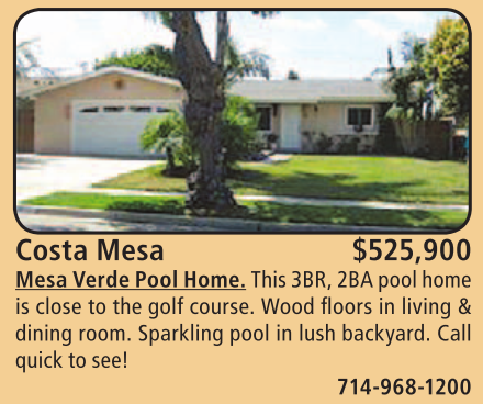Costa Mesa $525,900 Mesa Verde Pool Home. This 3BR, 2BA pool home