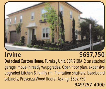 Irvine $697,750 Detached Custom Home, Turnkey Unit. 3BR/2.5BA, 2 car attached