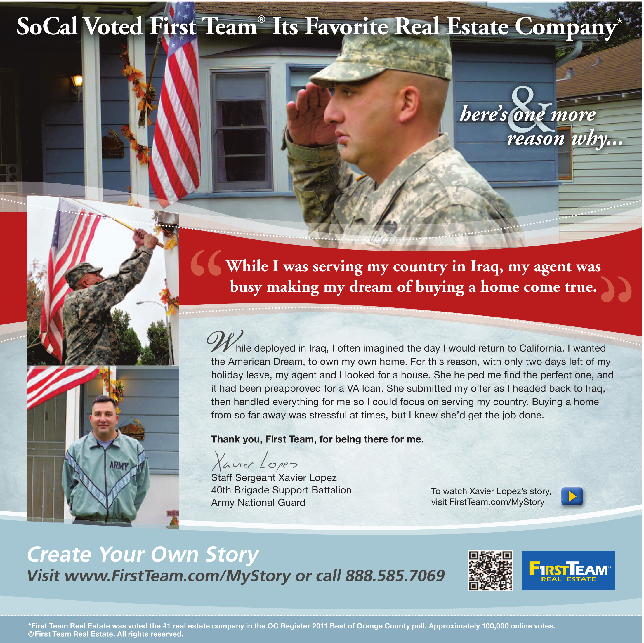 hile deployed in Iraq, I often imagined the day I would return to California. I wanted the American Dream, to own my own home. For this reason, with only two days left of my holiday leave, my agent and I looked for a house. She helped me find the perfect one, and it had been preapproved for a VA loan. She submitted my offer as I headed back to Iraq, then handled everything for me so I could focus on serving my country. Buying a home from so far away was stressful at times, but I knew she’d get the job done.