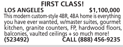 LOS ANGELES $1,100,000 This modern custom-style 4BR, 4BA home is everything you have ever wanted, w/master suites, gourmet kitchen, granite counters, FP, hardwood floors, balconies, vaulted ceilings + so much more!