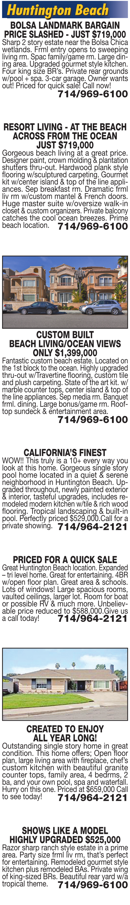 PRICED FOR A QUICK SALE Great Huntington Beach location. Expanded – tri level home. Great for entertaining. 4BR w/open floor plan. Great area & schools. Lots of windows! Large spacious rooms, vaulted ceilings, larger lot. Room for boat or possible RV & much more. Unbelievable price reduced to $588,000.Give us a call today! 714/964-2121