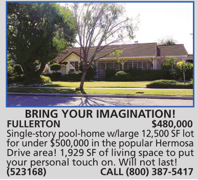 FULLERTON $480,000 Single-story pool-home w/large 12,500 SF lot for under $500,000 in the popular Hermosa Drive area! 1,929 SF of living space to put your personal touch on. Will not last! (523168) CALL (800) 387-5417