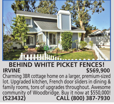 IRVINE $569,900 Charming 3BR cottage home on a larger, premium-sized lot. Upgraded kitchen, French door sliders in dining & family rooms, tons of upgrades throughout. Awesome community of Woodbridge. Buy it now at $550,000! (523432) CALL (800) 387-7930