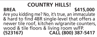 newer tile roof, kitchen w/granite counters, wood & tile floors & living room w/FP. (523167) CALL (800) 387-5417