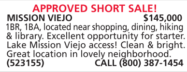 MISSION VIEJO $145,000 1BR, 1BA, located near shopping, dining, hiking & library. Excellent opportunity for starter.