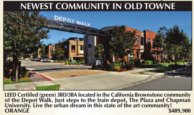 LEED Certified (green) 3BD/3BA located in the California Brownstone community of the Depot Walk. Just steps to the train depot, The Plaza and Chapman University. Live the urban dream in this state of the art community! ORANGE $489,900