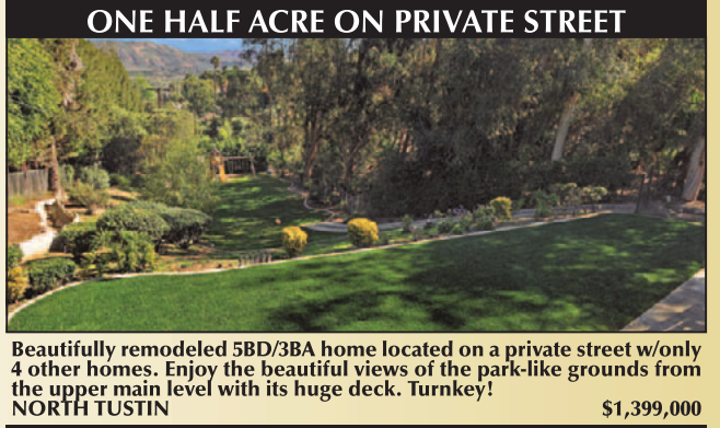 Beautifully remodeled 5BD/3BA home located on a private street w/only 4 other homes. Enjoy the beautiful views of the park-like grounds from the upper main level with its huge deck. Turnkey! NORTH TUSTIN $1,399,000
