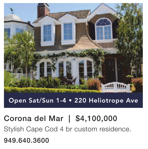 Corona del Mar | $4,100,000 Stylish Cape Cod 4 br custom residence. 949.640.3600