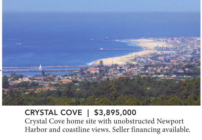 CRYSTAL COVE | $3,895,000 Crystal Cove home site with unobstructed Newport Harbor and coastline views. Seller financing available.