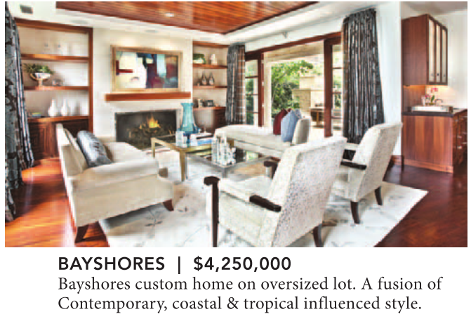 BAYSHORES | $4,250,000 Bayshores custom home on oversized lot. A fusion of Contemporary, coastal & tropical influenced style.