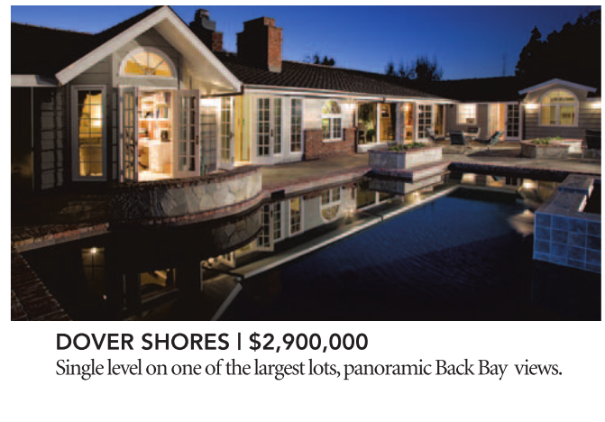 DOVER SHORES | $2,900,000 Single level on one of the largest lots, panoramic Back Bay views.