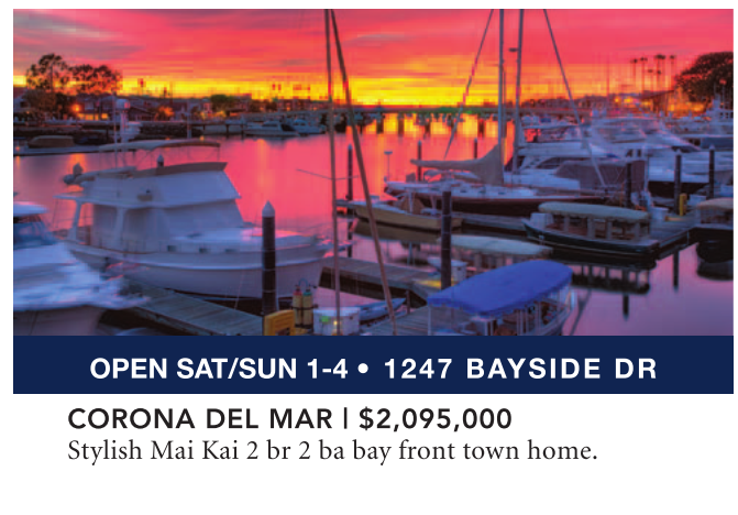 CORONA DEL MAR | $2,095,000 Stylish Mai Kai 2 br 2 ba bay front town home.