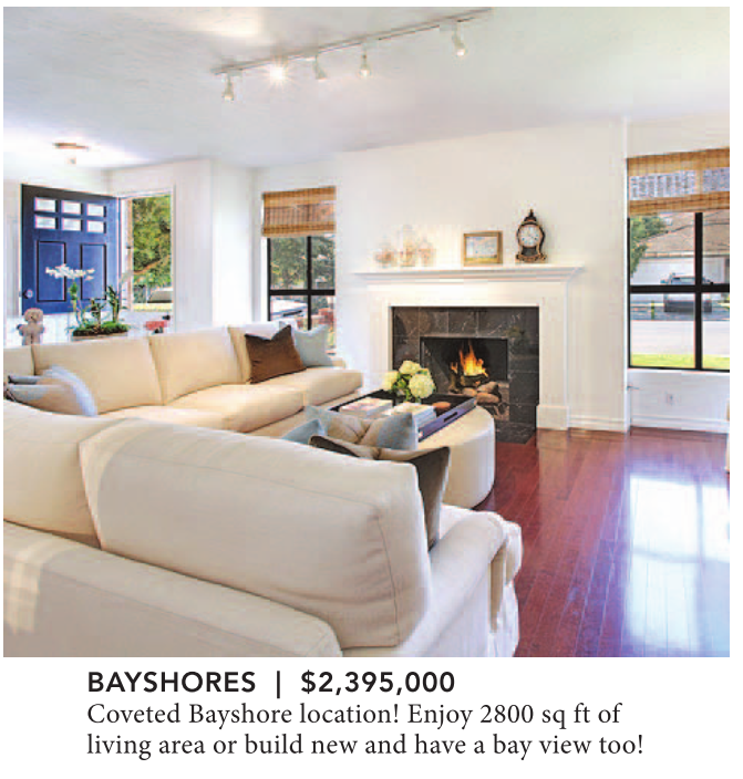 BAYSHORES | $2,395,000 Coveted Bayshore location! Enjoy 2800 sq ft of living area or build new and have a bay view too!