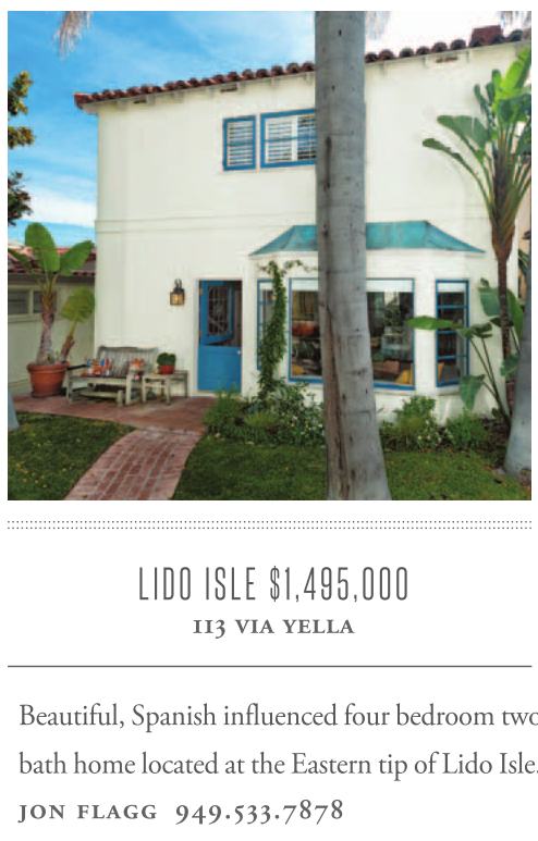 Beautiful, Spanish influenced four bedroom two bath home located at the Eastern tip of Lido Isle. jon flagg 949.533.7878
