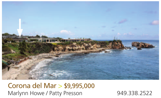 Corona del Mar > $9,995,000 Marlynn Howe / Patty Presson 949.338.2522