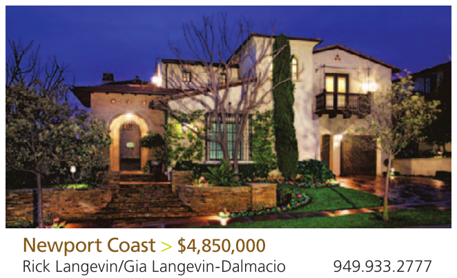 Newport Coast > $4,850,000 Rick Langevin/Gia Langevin-Dalmacio 949.933.2777