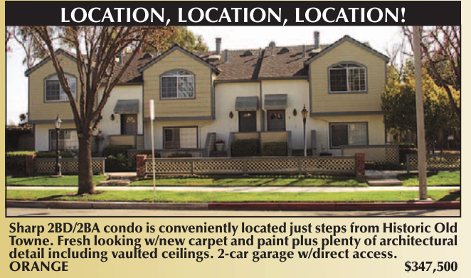 Sharp 2BD/2BA condo is conveniently located just steps from Historic Old Towne. Fresh looking w/new carpet and paint plus plenty of architectural detail including vaulted ceilings. 2-car garage w/direct access. ORANGE $347,500