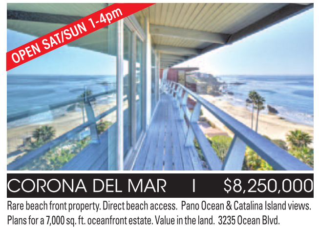 Rare beach front property. Direct beach access. Pano Ocean & Catalina Island views. Plans for a 7,000 sq. ft. oceanfront estate. Value in the land. 3235 Ocean Blvd.