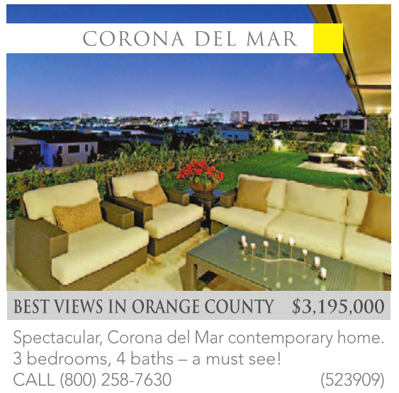 Spectacular, Corona del Mar contemporary home. 3 bedrooms, 4 baths – a must see! CALL (800) 258-7630 (523909)