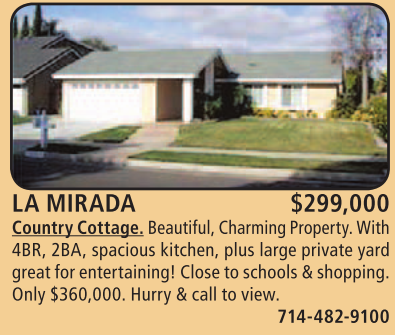 LA MIRADA $299,000 Country Cottage. Beautiful, Charming Property. With
