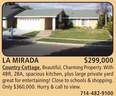 LA MIRADA $299,000 Country Cottage. Beautiful, Charming Property. With