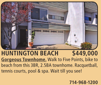 beach from this 3BR, 2.5BA townhome. Racquetball, tennis courts, pool & spa. Wait till you see! 714-968-1200