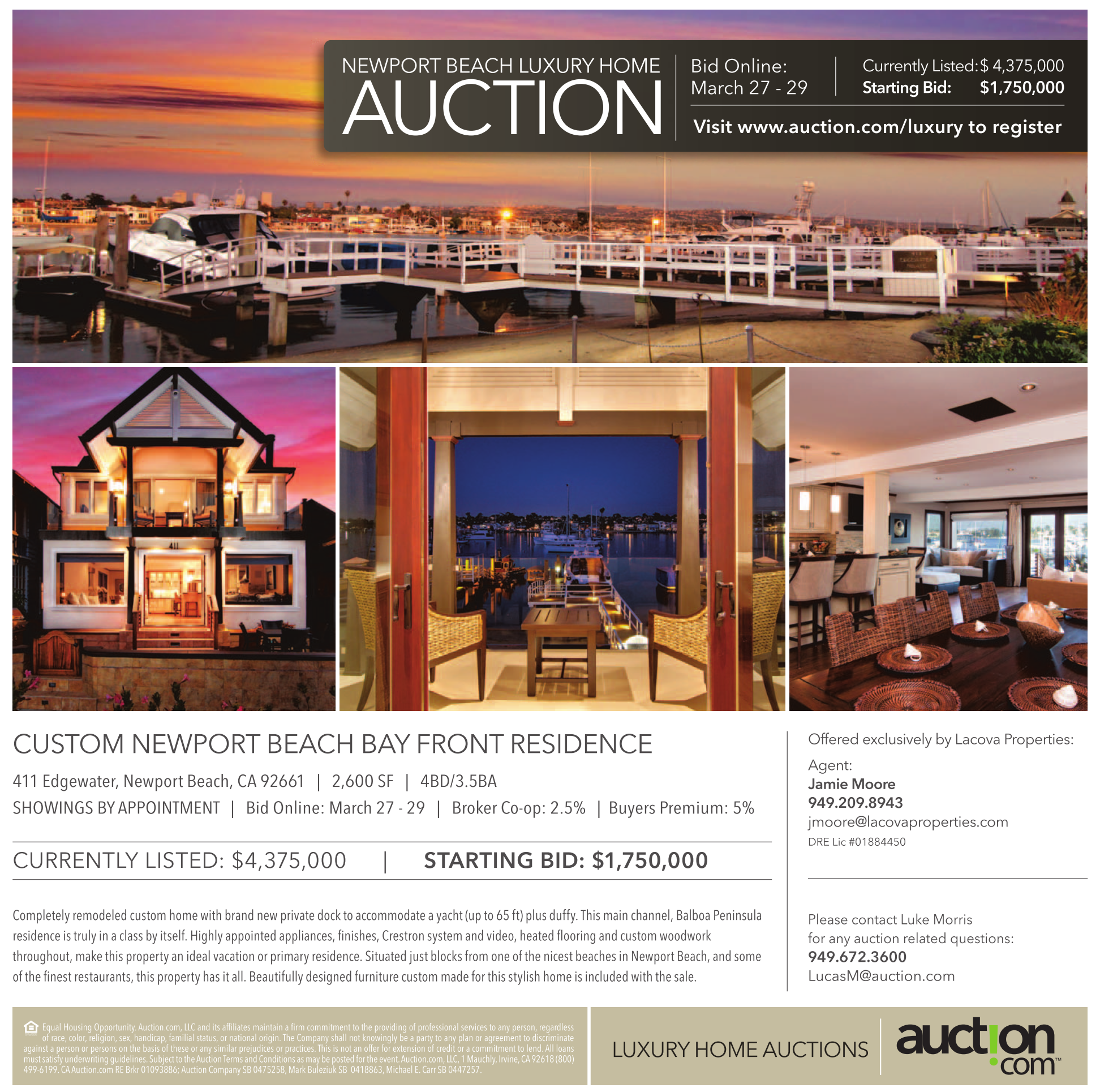 411 Edgewater, Newport Beach, CA 92661 | 2,600 SF | 4BD/3.5BA SHOWINGS BY APPOINTMENT | Bid Online: March 27 - 29 | Broker Co-op: 2.5% | Buyers Premium: 5%