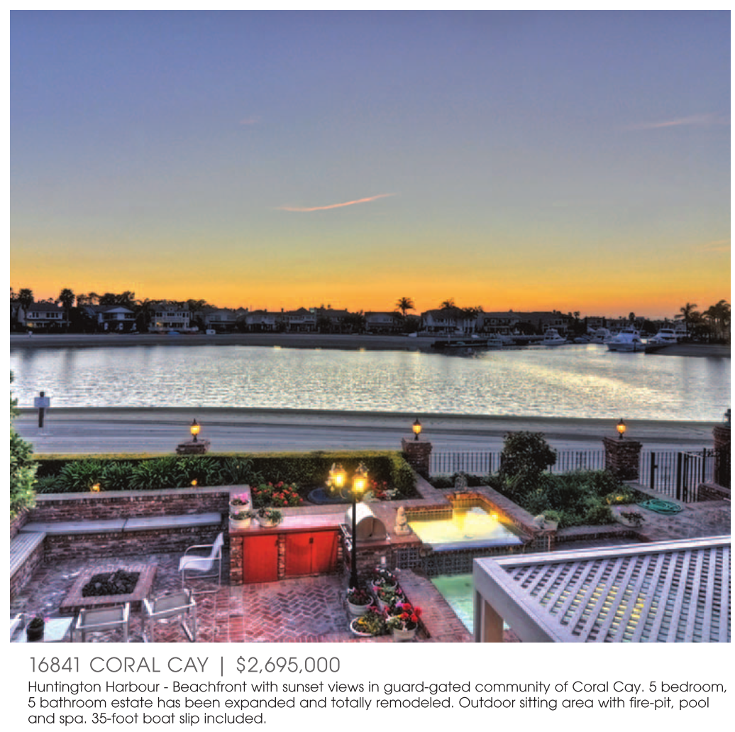 Huntington Harbour - Beachfront with sunset views in guard-gated community of Coral Cay. 5 bedroom, 5 bathroom estate has been expanded and totally remodeled. Outdoor sitting area with fire-pit, pool and spa. 35-foot boat slip included.