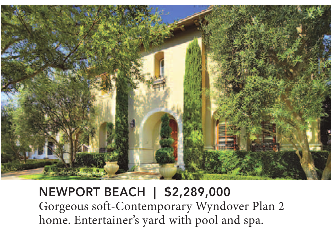NEWPORT BEACH | $2,289,000 Gorgeous soft-Contemporary Wyndover Plan 2 home. Entertainer’s yard with pool and spa.
