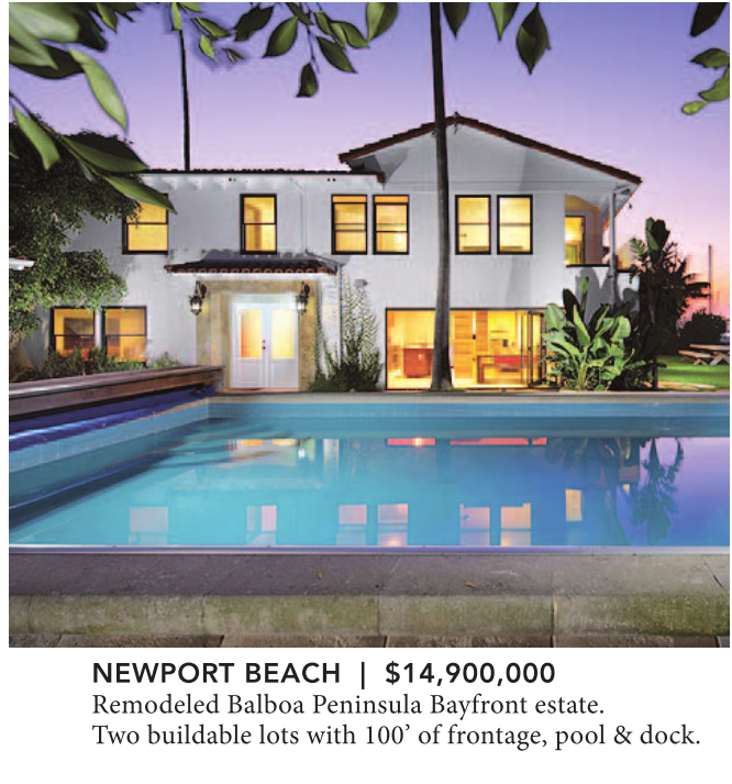 NEWPORT BEACH | $14,900,000 Remodeled Balboa Peninsula Bayfront estate. Two buildable lots with 100’ of frontage, pool & dock.
