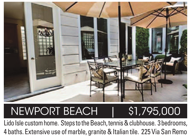 Lido Isle custom home. Steps to the Beach, tennis & clubhouse. 3 bedrooms, 4 baths. Extensive use of marble, granite & Italian tile. 225 Via San Remo