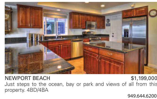 NEWPORT BEACH $1,199,000 Just steps to the ocean, bay or park and views of all from this property. 4BD/4BA 949.644.6200