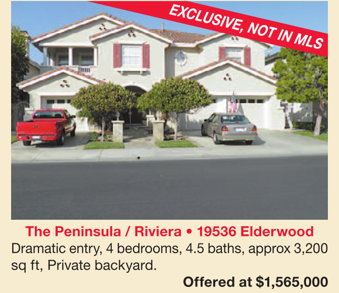 The Peninsula / Riviera • 19536 Elderwood Dramatic entry, 4 bedrooms, 4.5 baths, approx 3,200 sq ft, Private backyard.