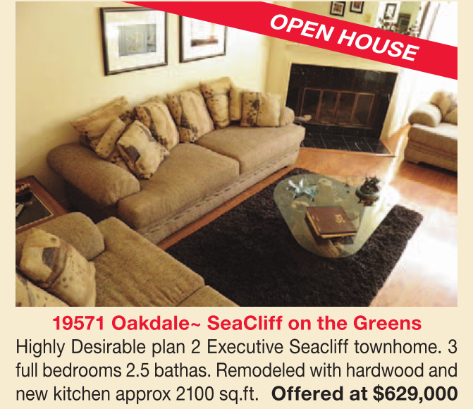 19571 Oakdale~ SeaCliff on the Greens Highly Desirable plan 2 Executive Seacliff townhome. 3 full bedrooms 2.5 bathas. Remodeled with hardwood and new kitchen approx 2100 sq.ft. Offered at $629,000
