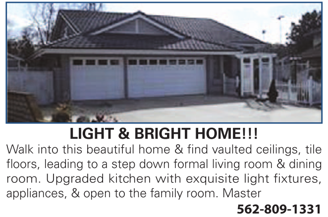 appliances, & open to the family room. Master 562-809-1331