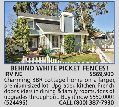 IRVINE $569,900 Charming 3BR cottage home on a larger, premium-sized lot. Upgraded kitchen, French door sliders in dining & family rooms, tons of upgrades throughout. Buy it now $550,000! (524496) CALL (800) 387-7930