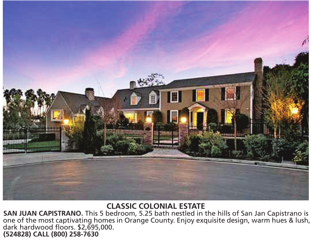 one of the most captivating homes in Orange County. Enjoy exquisite design, warm hues & lush, dark hardwood floors. $2,695,000. (524828) CALL (800) 258-7630